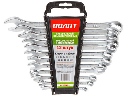 --Набор ключей комбинированных 12шт. (6-22) ВОЛАТ пластик/бокс Болторезы Верстаки Гвоздодеры и ломы Заклепочники Киянки Клещи Ключи газовые ( сантехнические) Ключи гаечные комбинированные Ключи гаечные накидные КГН Ключи гаечные рожковые Ключи разводные Ключи торцевые Кусачки ( бокорезы ) Молотки и кувалды Наборы инструментов Напильники и надфили Ножи строительные Ножницы Ножовки ручные Отвертки Паяльные лампы и паяльники Пистолеты для монтажной пены и герметика Плиткорезы ручные Плоскогубцы Рубанки ручные Стамески и долота Степлеры ручные Струбцины Стусла Съемники Тиски Топоры Инструменты для автомастерских Хозяйственные принадлежности Ящики инструментальные Торговое оборудование Клейма Ударный инструмент
