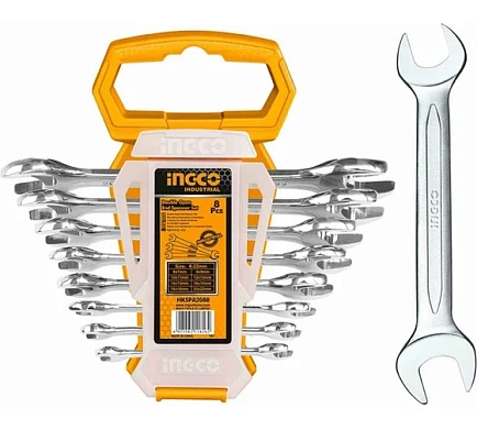 Набор ключей гаечных рожковых двусторонних 6-22 мм INGCO HKSPA2088 используется для работ с резьбовыми соединениями в процессе различных монтажных и демонтажных работ.6x7 мм, 8x9 мм, 10x11 мм, 12x13 мм, 14x15 мм, 16x17 мм, 18x19 мм и 20x22 мм.