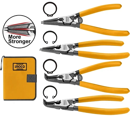 Набор съемников стопорных колец INGCO INDUSTRIAL 180 мм, 4 шт. HCCPS26180 используется для разжимания и сжатия внешних и внутренних стопорных колец, который широко используется в частных автомастерских, на СТО или в гараже.Съемники выполнены из прочной хром-ванадиевой стали, что обеспечивает им повышенную износостойкость.